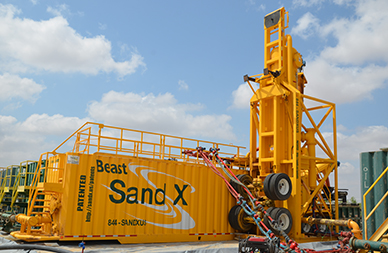 Super Loop® RoyalWell is rigged to 3" 1502 inlet subsequent to the customers hydraulic choke. Via the Gas Buster, pressure is released through the 8" expansion tube. Sand, chlorides and hydrocarbons fall to the bottom of the Super Loop® Royal; while gas exits the 4" outlet on top of the vessel. As solids settle to the bottom of SuperLoop® Royal, they are caught and moved up the elevator tube. The Super Loop® Royal process allows collection and delivery of solid material, minus gases, to be delivered to the Sand X® Beast. As solids and liquids are delivered to the Sand X® Beast the cleaning and separation process begins. Solids fall to bottom of hopper while liquids (hydrocarbons-oil) flow over the weir at rear of the hopper and enter the Sand X® Beast tank. As sand is moved up the tube to the discharge hose, liquid, chlorides and hydrocarbons are squeezed out of the sand leaving a non-hazardous material that is easily disposed. Impressively, laboratory tests have shown as little as 200 ppm. In addition to eliminating a hazardous material for disposal, the Sand X® Beast process also allows operators to re-circulate drilling fluids from the Sand X® Beast tank, saving thousands in chemical costs. For more information please visit www.sandx.us. |
